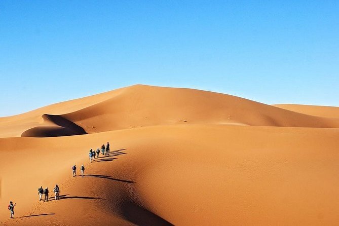 After watching a spectacular desert sunrise over the dunes we climb into our 4X4 and star tour Saharan desert adventure. Chegaga has the biggest sand dunes in Morocco which reach over 300 metres high. We then visit the Qoran library and small underground streets before continuing along a most beautiful route to Mhamid village, the last village before the expanse of the Sahara opens before us. Here we will travel along a sandy road famous owing to its links with the Paris-Dakar Rally which pass through here too.