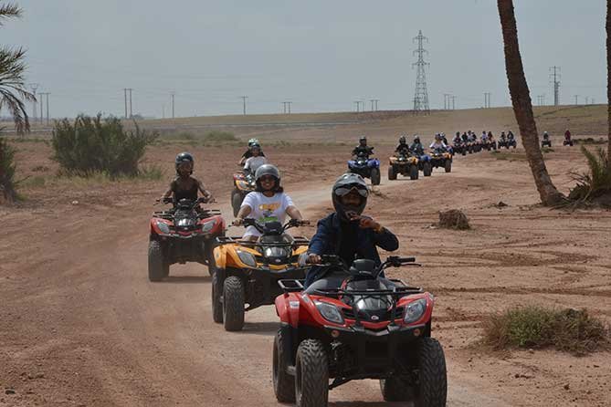 The desert landscape around Marrakech is crossed by dusty roads and roads, of which your guide knows the best nooks and crannies. Walk through rocky terrain, palm groves and dried rivers, cross a desert of jbilets – landscapes of volcanic rocks that have naturally formed over millennia. Your guide will control the speed of your group to make the ride as safe and enjoyable as possible. Do not forget to bring your camera to immortalize the landscape!